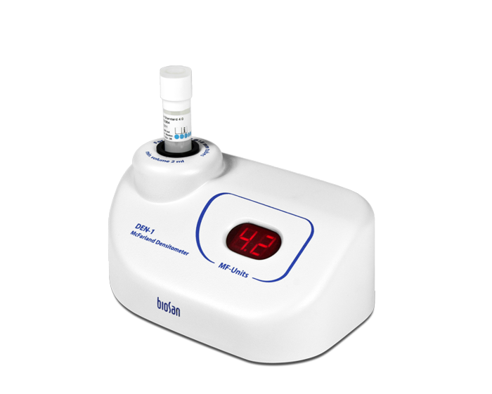 Densitometer is designed for measurement of cell suspension's turbidity in the range of 0.3–5.0 McFarland units (100×106 – 150×107 cells/ml).